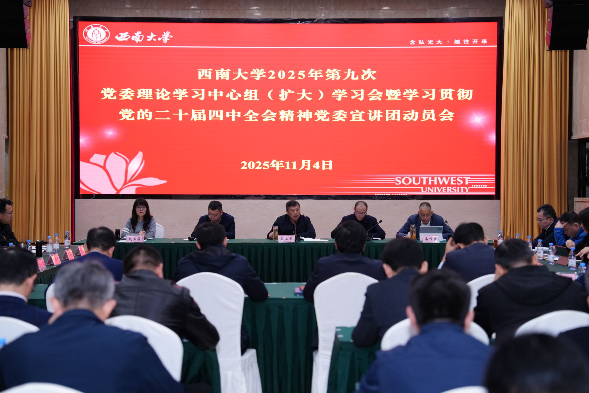 11月4日上午,学校召开2025年第九次党委理论学习中心组(扩大)学习会暨学习贯彻党的二十届四中全会精神党委宣讲团动员会,深入学习领会习近平...