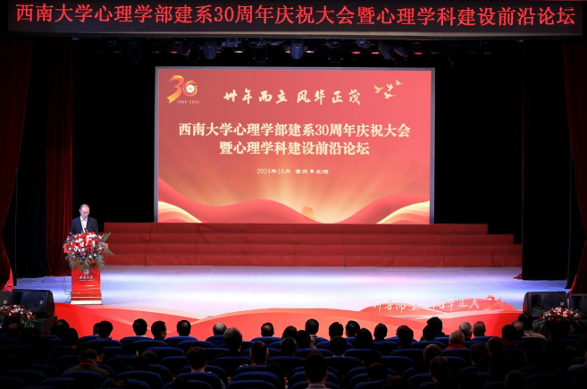 10月20日上午,西南大学心理学部举行“三十载砥砺奋进,新时代再创辉煌”庆祝大会,庆祝建系三十周年。来自35家心理学单位(机构)88名知名专家,学校领导、心理学部历任党政领导与师生代表近1000人出席大会。