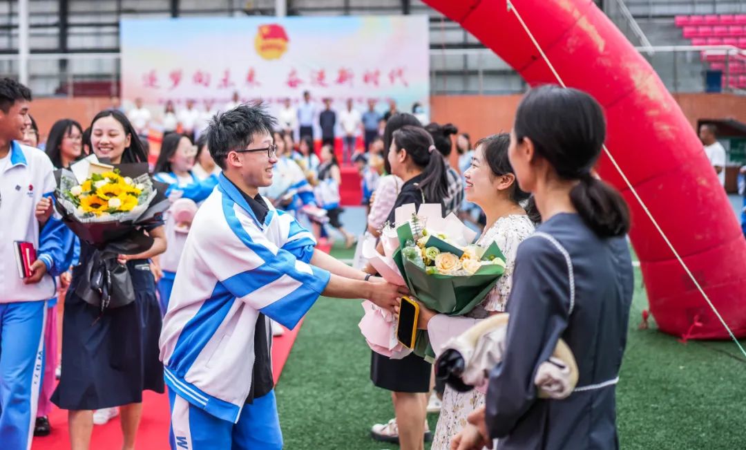 高三学生在毕业典礼上给老师献花陶亮摄