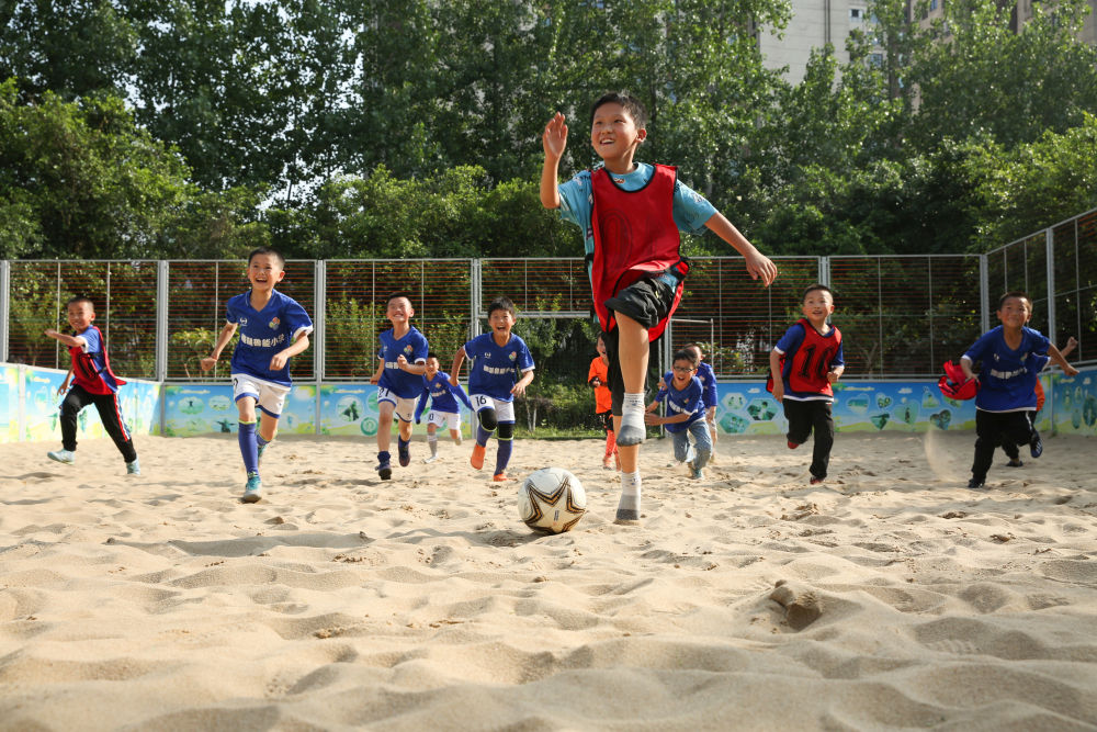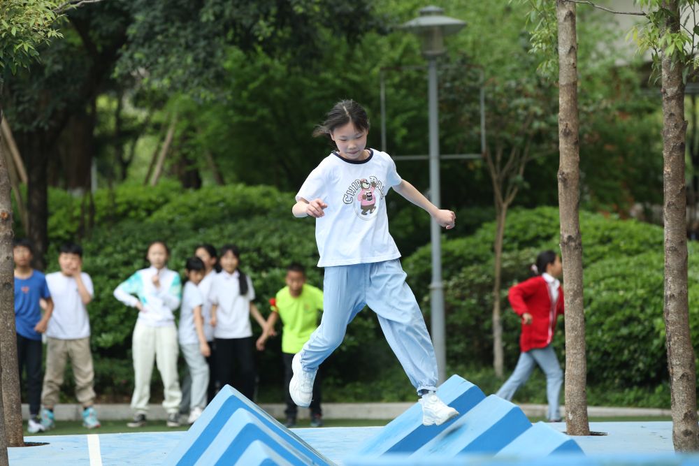 重庆珊瑚鲁能小学的学生在进行体能综合训练
