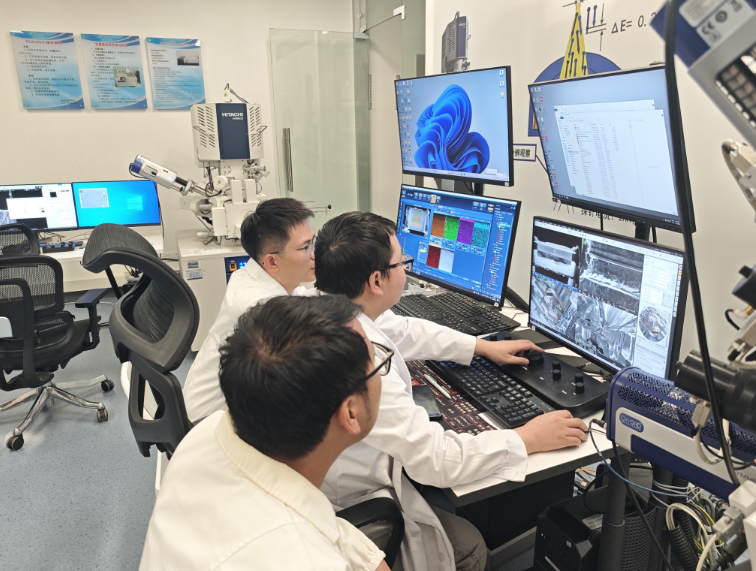 ▲重庆大学分析测试中心工作人员和企业技术人员一起使用聚焦离子束扫描电子显微镜进行新材料开发。受访单位供图