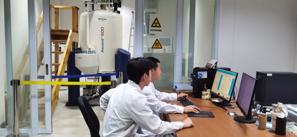 ▲西南大学实验人员正在解析核磁检测结果。受访者供图