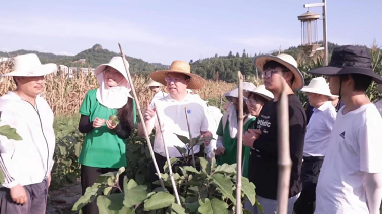 西南大学校长王进军(左三)向项目负责人朱秋雨(左二)介绍烟粉虱在茄科作物上的危害。学校供图 第1眼TV-华龙网发