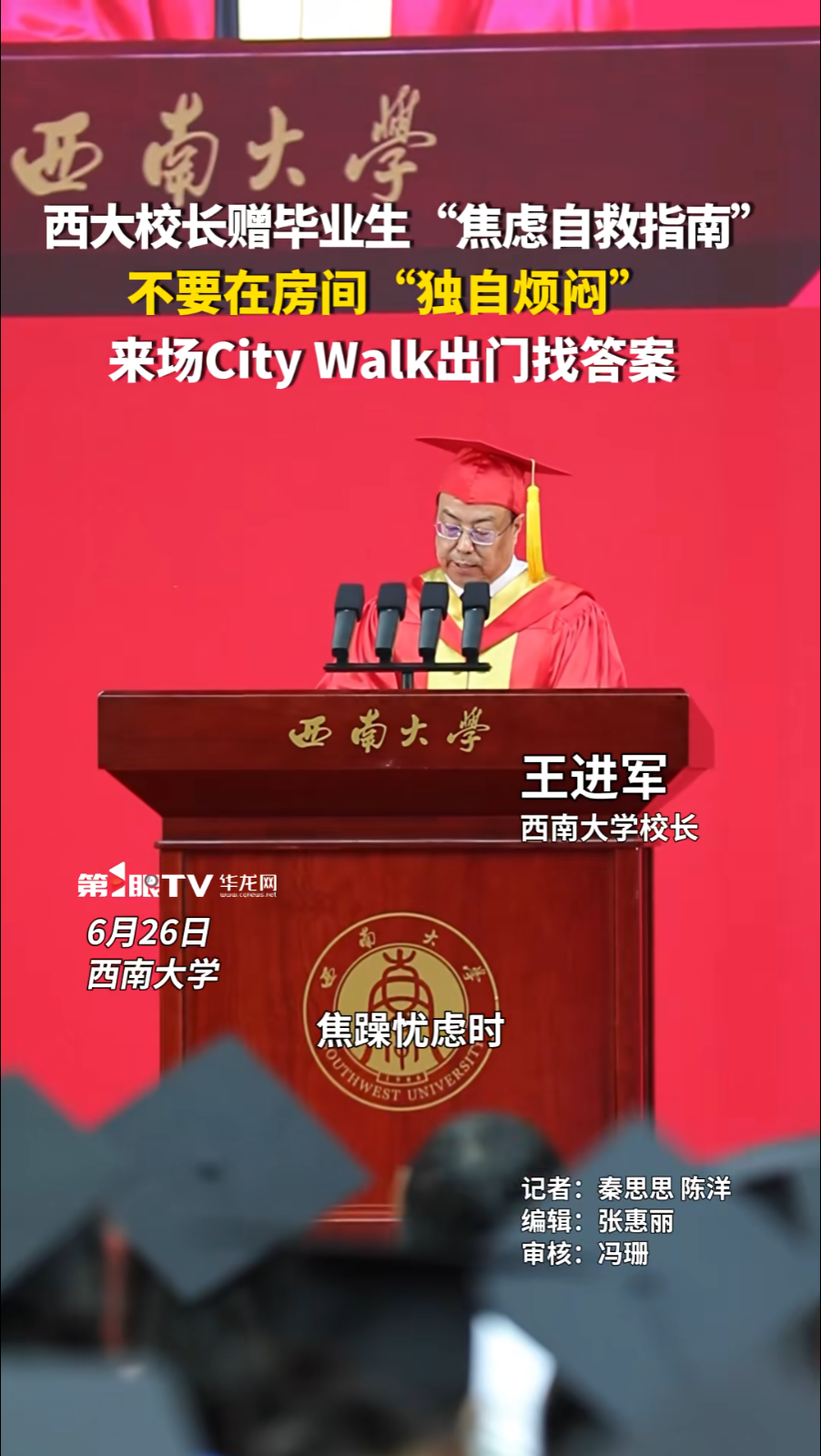 西大校长赠毕业生“焦虑自救指南” 不要在房间“独自烦闷” 来场City Walk出门找答案