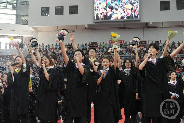 “焦躁忧虑时,不要把自己关在房间‘独自烦闷’,去山川湖泊,去公园林荫,或者是来一场City Walk,或许在路上就能找到问题的答案。”毕业典礼讲话中,校长王进军寄语毕业生时说道。